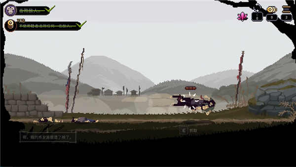 2、使用技艺击败敌人后,可以看见左上角的任务完成;