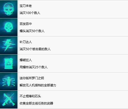 近战武器:电击匕首可短暂瘫痪敌人,适合潜入时无声制敌。