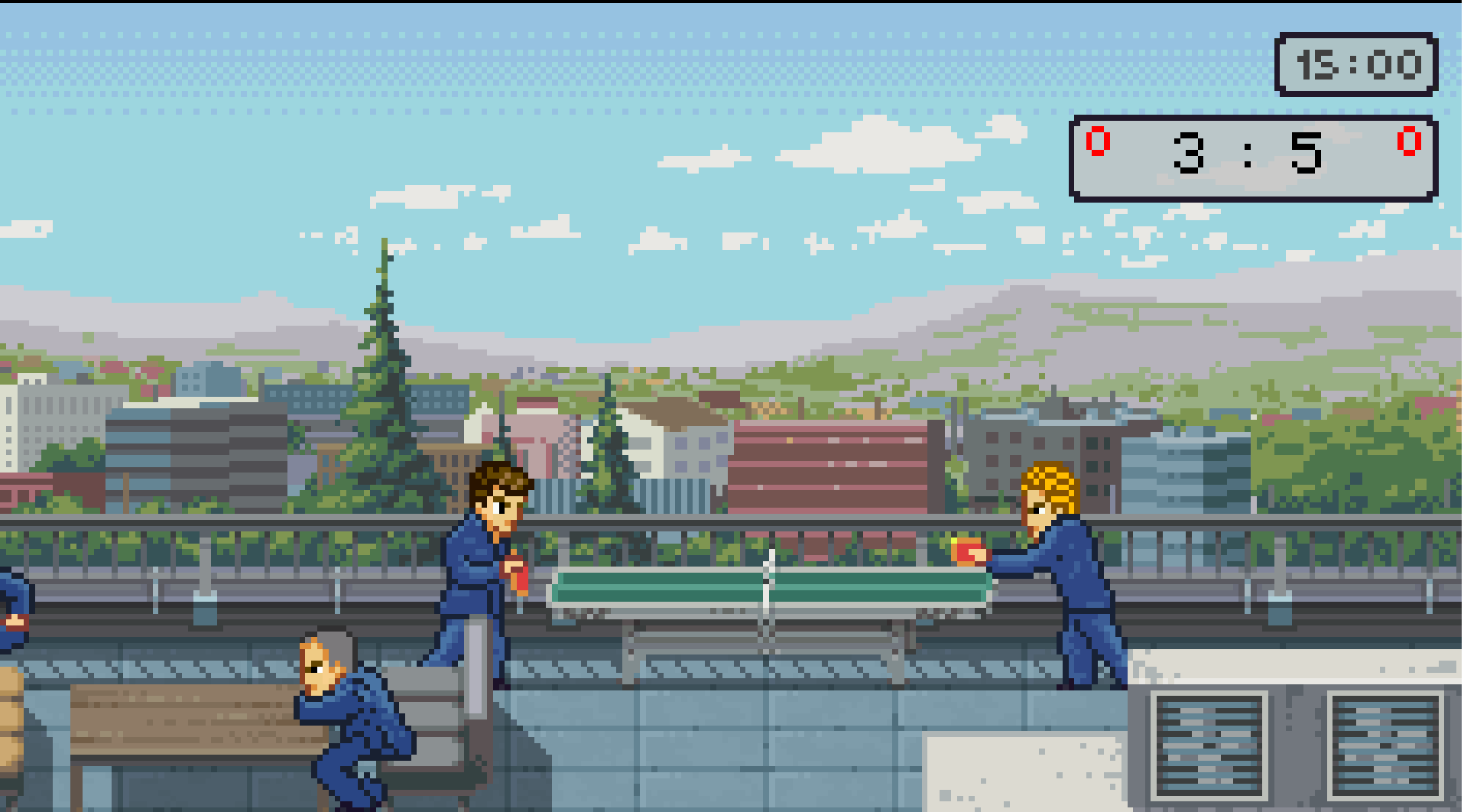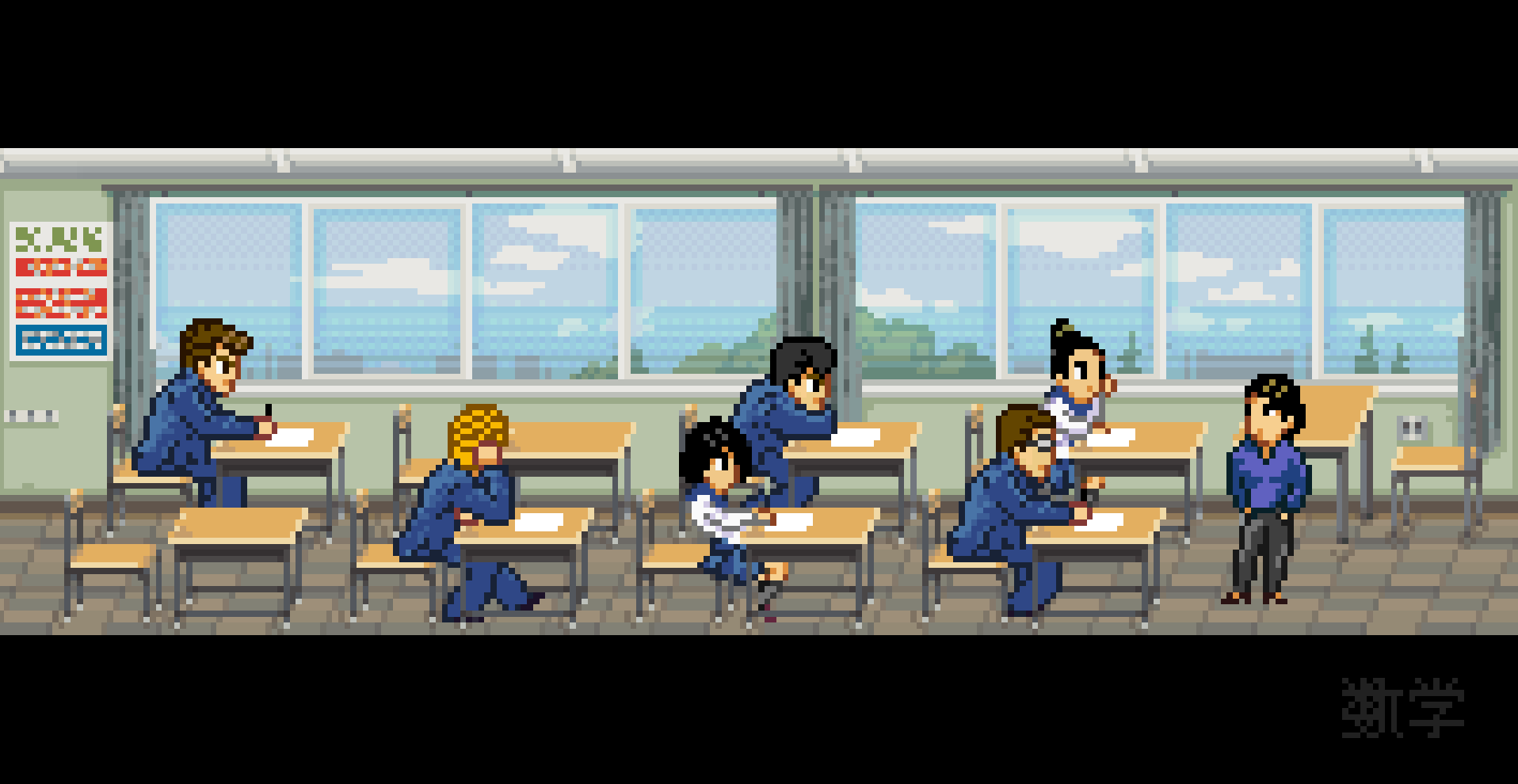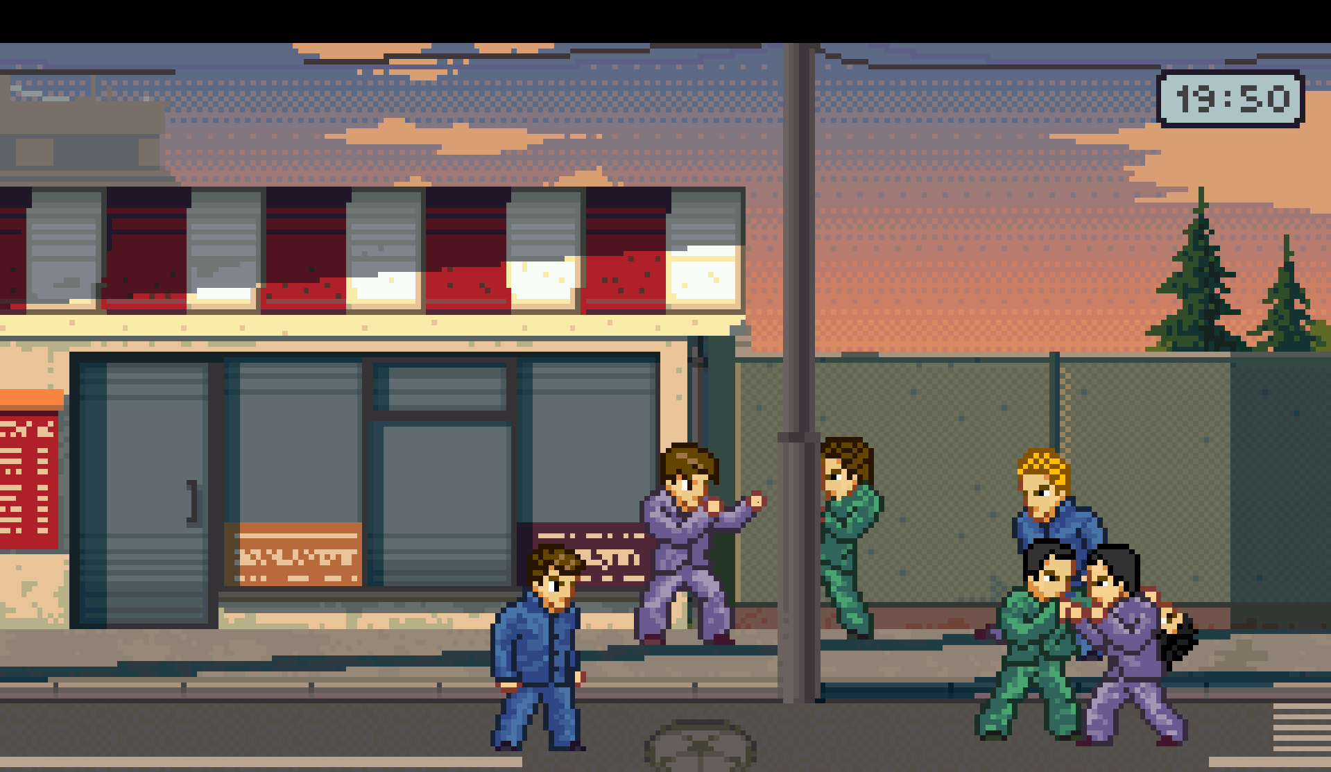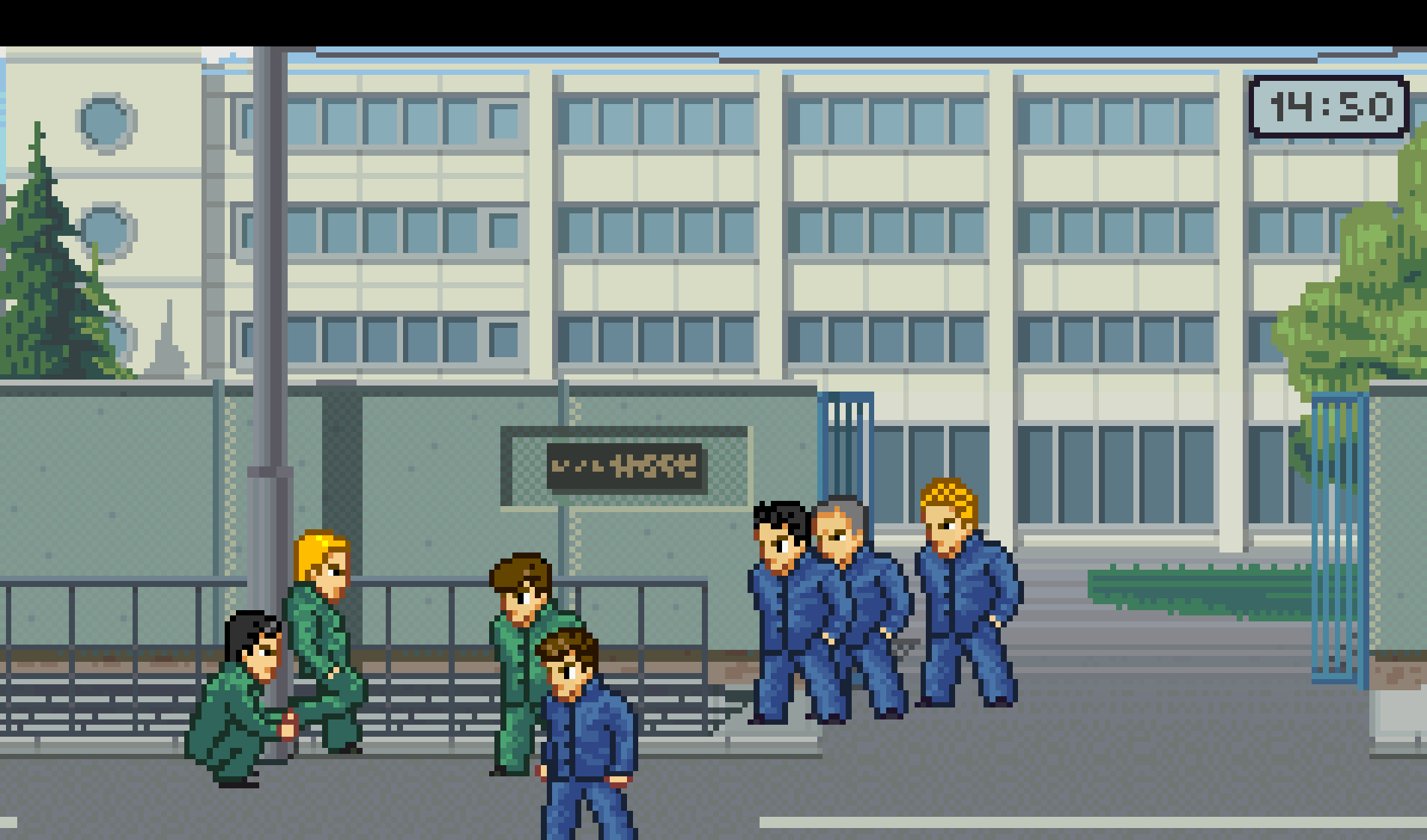 《石河伦吾的朋友们》是一款像素风格的开放世界游戏,玩法类似《热血物语》,主打校园生活与帮派斗殴结合的故事体验。作为不良少年,玩家可以在小镇里上课、锻炼、打拳击,还能和朋友在天台闲逛,或者痛快地打一架。游戏里有丰富的任务系统,比如帮助NPC解决问题、收集物品,解锁新地图和友谊奖励。昼夜交替的场景、按日程活动的NPC,加上乒乓球和台球等小游戏,让整个世界显得活灵活现。