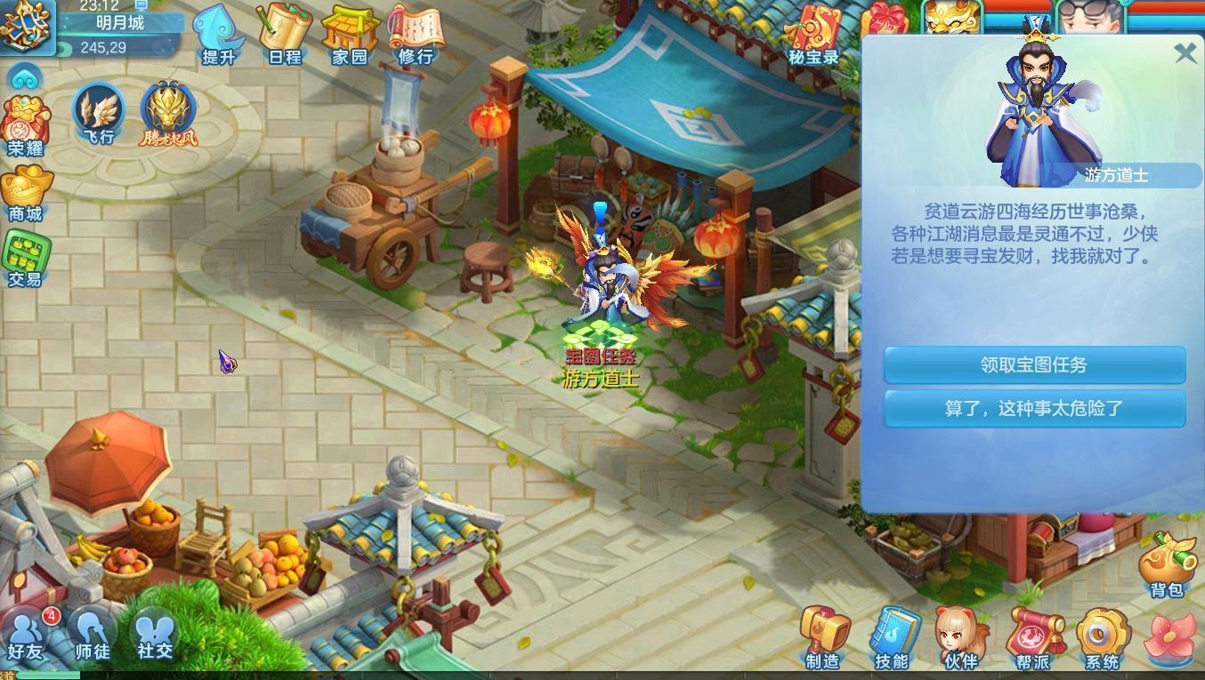 单人任务:去找明月城的游方道士打探贼王的下落,打败贼王获取他们身上的藏宝图!你可以根据藏宝图提供的线索获取宝物!