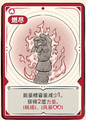 1、伤害buff有加算和乘算两类,这两张牌给的力量就属于加算,由于葡萄弹是连续攻击,所以对它的利用很好,加算的还包括挂给对面的脆皮debuff。这两张牌里别看生气气只有1稀有度,其实它比燃尽强太多了,因为燃尽扣能量槽,如果触发多了反而会把能量吞掉,不太推荐燃尽这张牌。这两张牌和葡萄弹一样有风暴词条,攒了一堆火能量爆发前打一张,对葡萄弹提升太大了