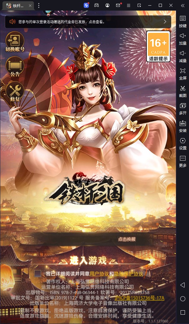 铁杆三国电脑版还支持多种PVP玩法,有同屏对战、跨服对战以及团队竞技等,可以让玩家们体验不同的战略游戏乐趣。不仅如此,铁杆三国电脑版更是有着立绘精美的游戏人物、富有创意的技能特效,以及强烈的打击快感和征服欲,来让你的三国更爽快,打造自己的最强阵容,构建自己的三国世界!