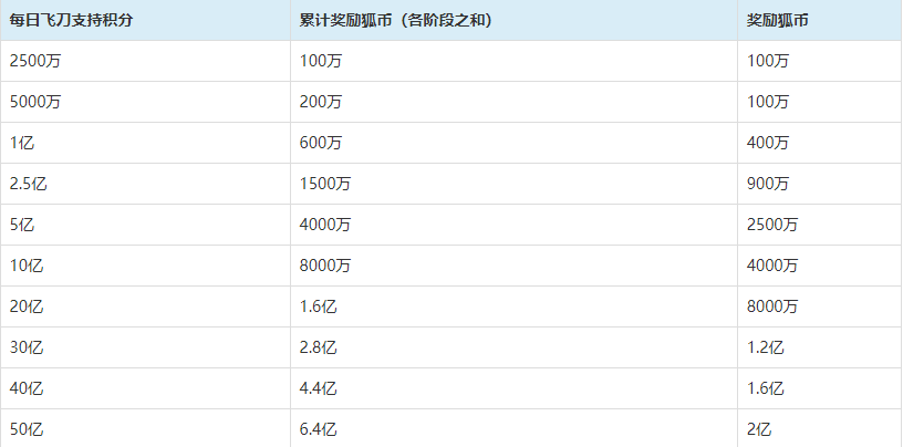 参与刀神挑战、刀神番棋对局支持,可获得刀神支持积分,达成积分条件即可在右侧任务系统领取对应奖励。每日最高可得6.4亿狐币奖励。详细规则如下: