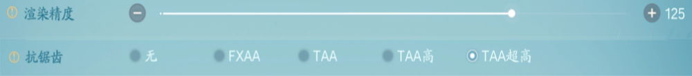 2、对于享受细腻画质,讨厌锯齿感的仙友:可以提高渲染精度,打开抗锯齿TAA来提升画面细节