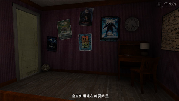 出门进入打开另一个房间下楼,到二楼之后之前前往厨房,会看到一个手电筒,转弯出来点击正对厨房的门触动剧情。