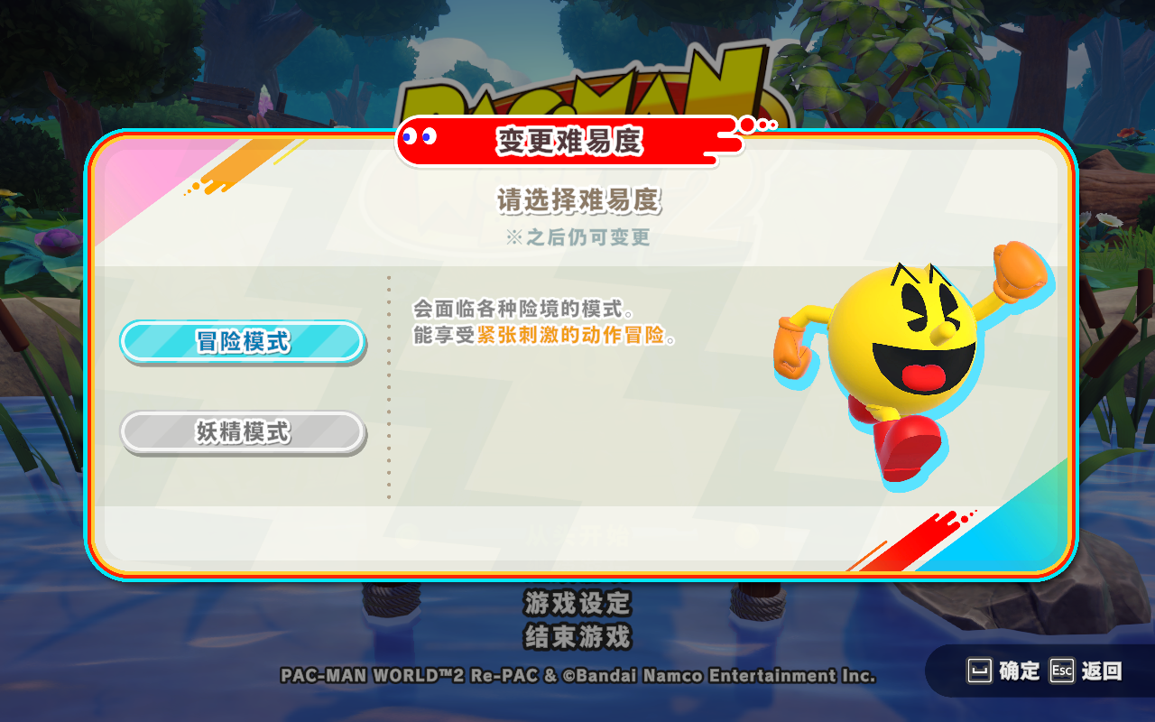 2、随后选择游戏模式,冒险模式就是正常的游戏难度,妖精模式类似“旅游模式”,敌人无法对玩家造成伤害,还有妖精会给玩家给予帮助。