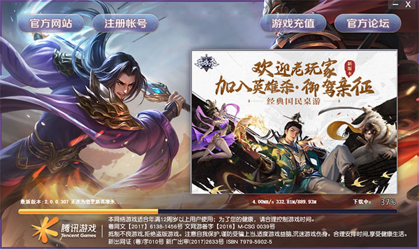 2、添加成功后,运行英雄杀电脑版,并下载额外的数据包,期间耐心等待即可。