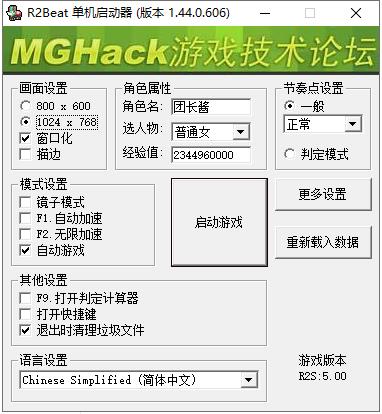 2、首先双击运行"R2Single"程序打开启动器,可设置角色名,性别,经验,节奏点类型: