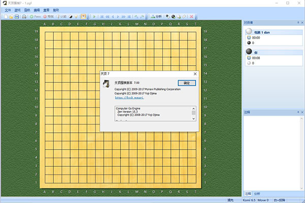 4、支持多种棋盘大小(9路至19路),可设置引擎强度、让子、贴目等,并可保存为自己的默认设置。