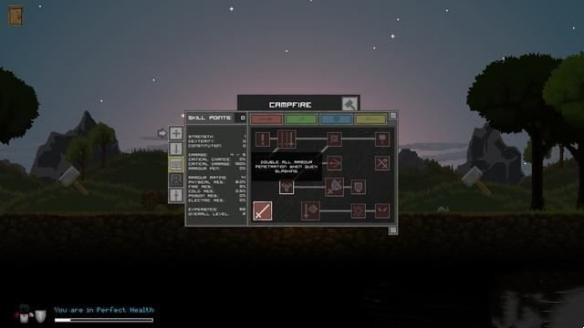 按下I键可以开启角色信息栏。如下图所示,当角色在上一场战斗中升级后,在营火处开启信息栏可以分配获得的属性点数: