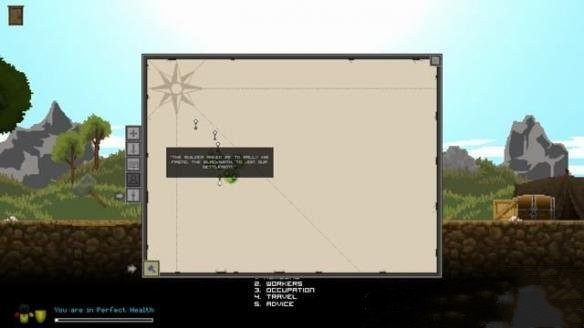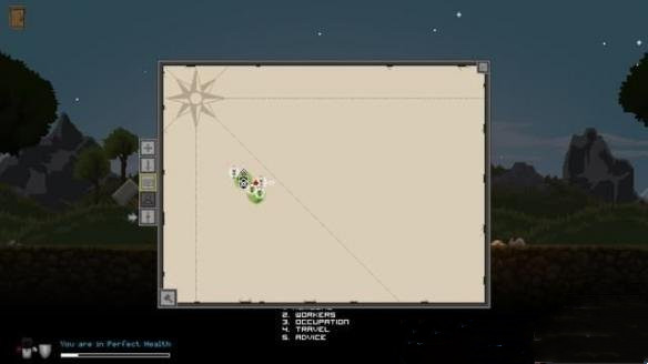 建立营火后,车夫会给玩家带来一项新的功能:探索地图。该功能页面可以与车夫对话后选择4选项Travel开启,也可以直接在角色信息栏左侧分页最下方的选项开启