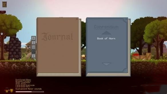 在探索场景过程中开启宝箱,还有几率获得掉落的诺恩(北欧神话中三大命运女神之一)之书的书页,按下J键(也可以按下I键开启角色信息栏手动选择左侧第三行的书架)可以打开书架选择右侧的蓝皮书查看新收集到的书页内容