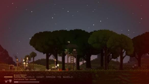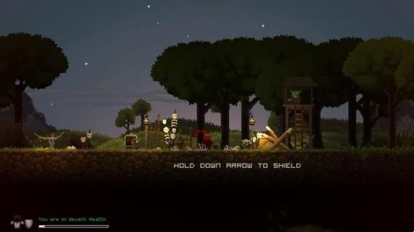 盾防(持盾下):按住方向下键,持盾对敌人的攻击进行防御,会消耗盾牌的耐久度,免伤敌人的轻击,收到重击时会被击退并受到盾牌减免后的伤害