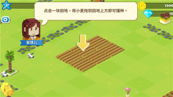 5、按照提示,点击田地,将小麦拖拽到土地上即可完成播种