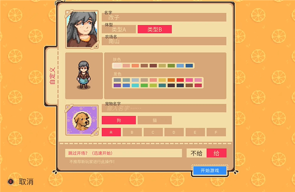 1、进入游戏首先创建角色、宠物名称以及外观。