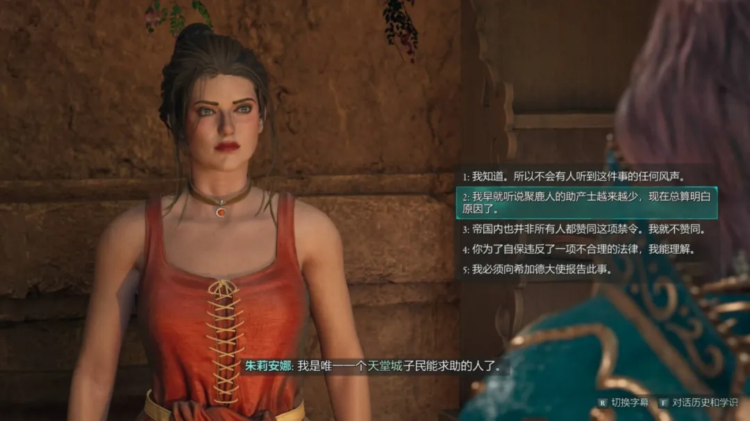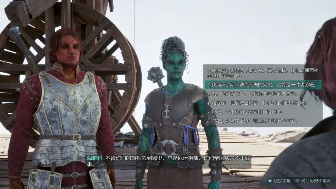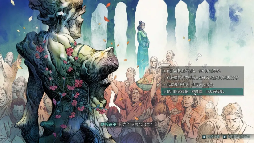和所有黑曜石的作品一样,《宣誓》的文本量非常庞大。和一个NPC对话可能需要花费好几分钟,谈话的内容也不仅限于当前的目标和任务,还能深入了解这个世界的动态、他们的生活、兴趣爱好,甚至可以旁敲侧击地得到其对特定阵营、事物的看法。这些NPC并不像其他RPG游戏中那样,只是一个交还任务和发奖励的工具人。而是被真正塑造出来,作为展现世界观、独特文化,甚至故事隐喻的一部分。