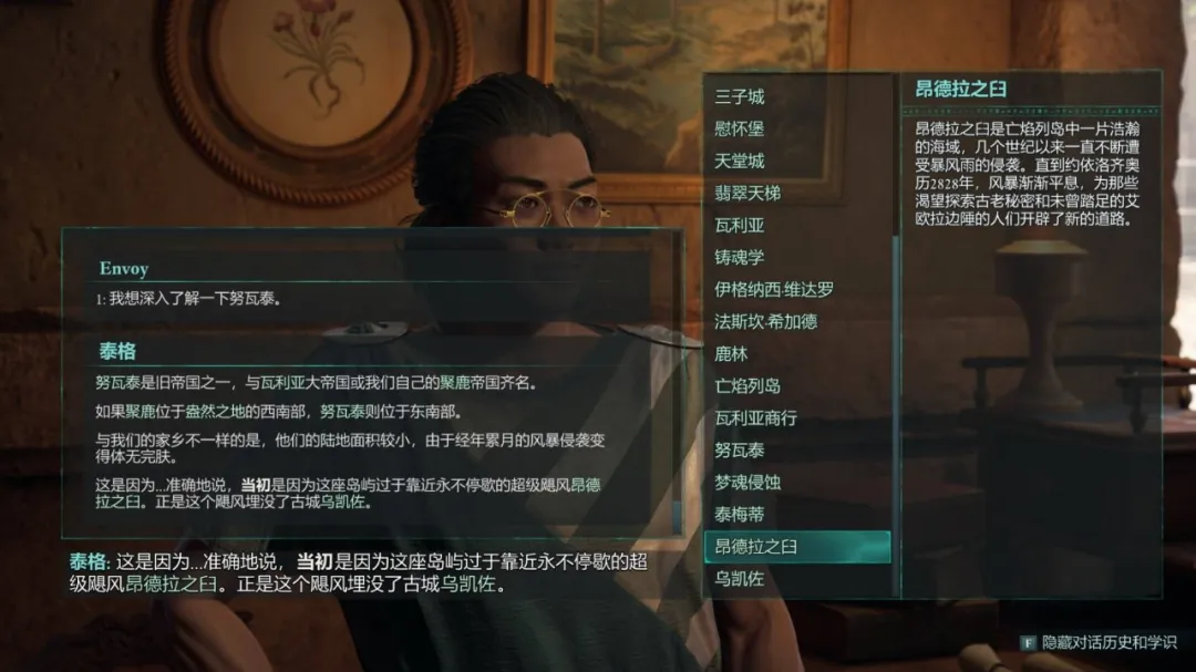 尽管游戏中有大量前作的地名与概念,但新玩家也不必担心没玩过《永恒之柱》会对剧情理解产生障碍。游戏提供了非常详细的名词功能表,解释每句话里夹杂的诸多名词到底是什么意思。但这也导致玩家很难轻松地一口气读完文本,往往需要逐字逐句地去对话理解,才能掌握关键信息。