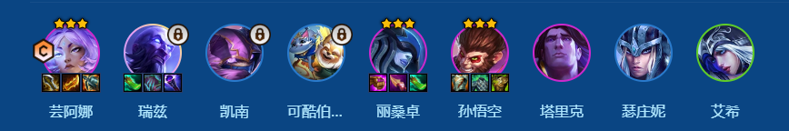 搜牌节奏:在解锁凯南和可酷伯的过渡情况下,快速上8然后抽出2星前排和后排输出阵容成型后稳血上9,补瑞兹大成。
