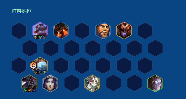 阵容站位:卑尔维斯站最肉的前排后面,蝎子站另一侧,可以尝试夹一下对面的前排站位。赛娜灵活调整位置尽量躲避对面小鱼人或者大控。