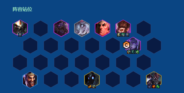 阵容站位:孙悟空对位对方输出,己方输出站在孙悟空侧,注意对方的阵容,如果有很多AOE或者打后排的棋子需要调整主C去角落
