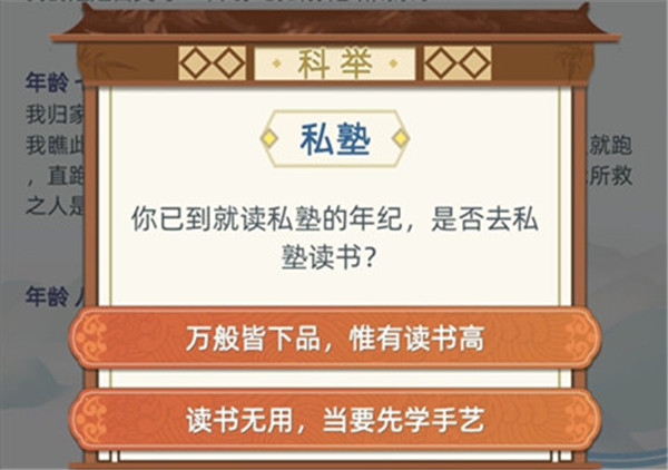 保持捉蛐蛐卖钱,参加蛐蛐比赛。走科考路线前期没钱记得多去射箭锻炼身体,后期有钱就去医院一条龙,加心情加体质。(一直保持体质巅峰可以多活好多年)继续走科考路线,每年点一次学习,如果学时差的多就去客栈找秀才聊天,处世差的多就去找小姑娘老太太聊天,品德差的多找乞丐和老头。科举3次考试,三次考试分别是拼图 、答题和填字。最后有个殿试。殿试看题目,高谈阔论和指点江山都不要,破题要破好,然后选适当解题方法,基本状元。破题错了没有好成绩,解题错了当不了状元。