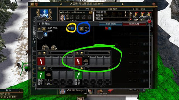 点开后,红圈内的是你要选择自动贸易的起点建筑,这里我选的是农场。