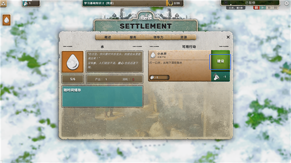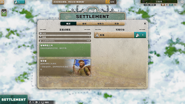 3、人力可用于建造、探索等等。在定居点中可随时间增加。