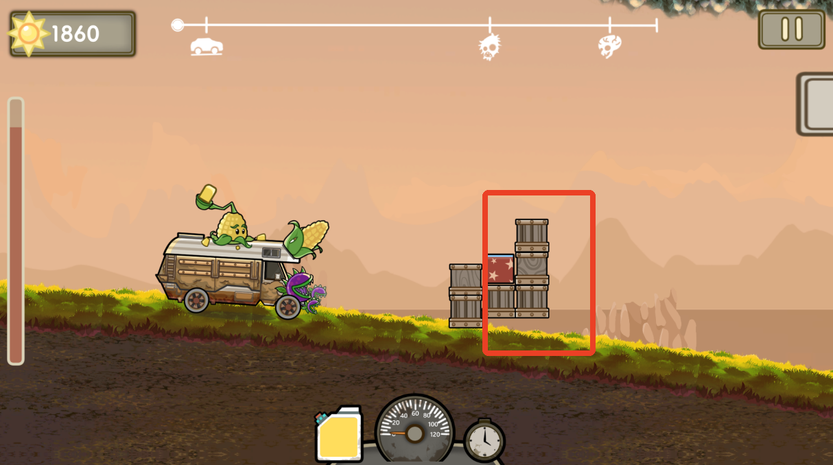 1、正常来说直接用战车撞击箱子就可以了,但是撞击箱子的同时,会扣除我们的血量,这就会导致我们的战车会跑不远。