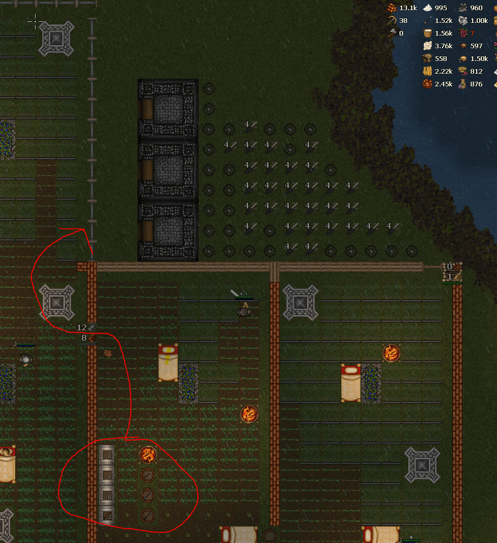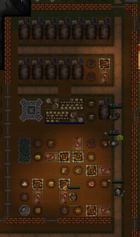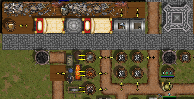 一般来说,你应该确保工匠们无需在基地内走动就能制作物品。将物品成排放置,并经常使用道路来减少移动时间。