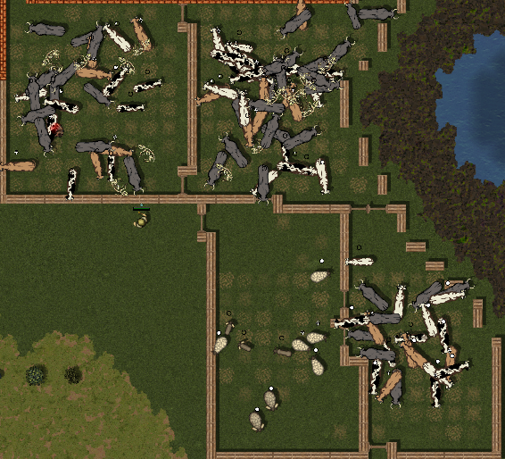 至少建造 2 个牛羊圈,刚开始的时候,至少要有 2 个雄性和4个雌性。确保它们都不是年老的。当一个牛栏里的牛数量减少时,可以从另一个牛栏转移一些牛来补充。