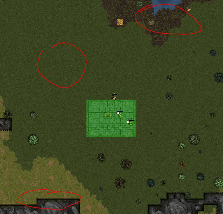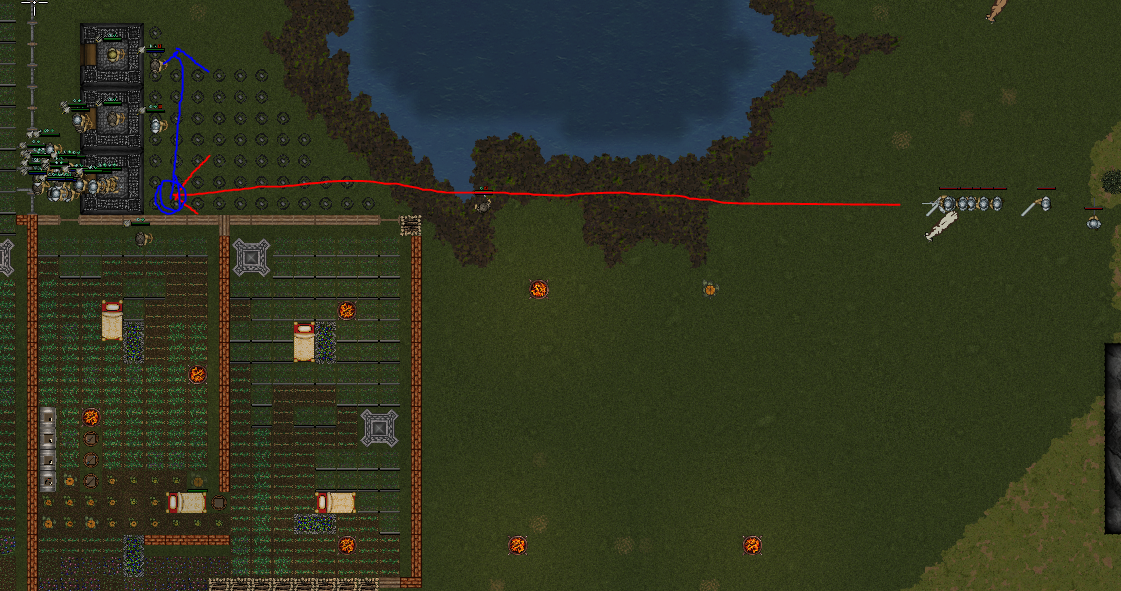 这是我目前的驻军。蓝色区域是你的位置,以及你希望敌人靠近时你引导他们前进的路线。确保你的装备靠近驻军,这样你的农民就不用走半个地图去取装备了。