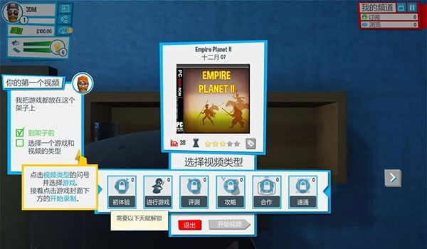 2、游戏可以看到其可玩度评价,最高5星,自然越高视频越容易火。然后选择一个视频类型,在没有加天赋前你只能录制进行游戏的普通视频。