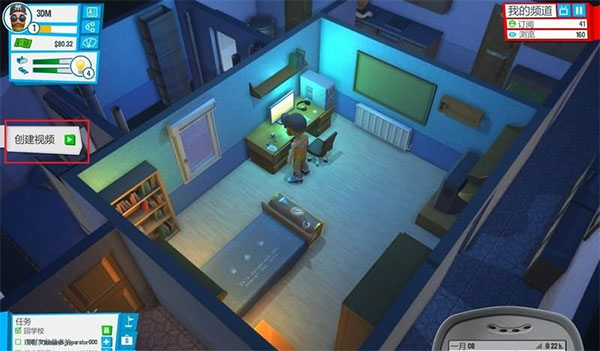 1、虽然是游戏主播,但是主角本身还是一个学生,因此游戏中有不少琐碎的事情需要玩家进行统筹安排。当你决定录制一个视频是,如果遇到电脑故障等突发事件也不要紧,你可以先处理紧急的事情。创建的新视频会在左侧红框保留,琐事处理完毕后点击就可以继续之前的工作了。