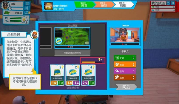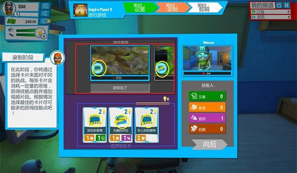 1、创建自己的频道,并决定最佳内容:流行视频游戏,即兴流内容、专业评论…收集卡片来制作最佳内容,并为每个视频和情况选择最合适的回应。