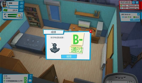 5、还需要时刻关注学习情况,尽量保持学习状态在深绿色左右,这样才能和老妈保持较好的关系。(实际上老妈在游戏里具很大的威胁,不要得罪她老人家。)