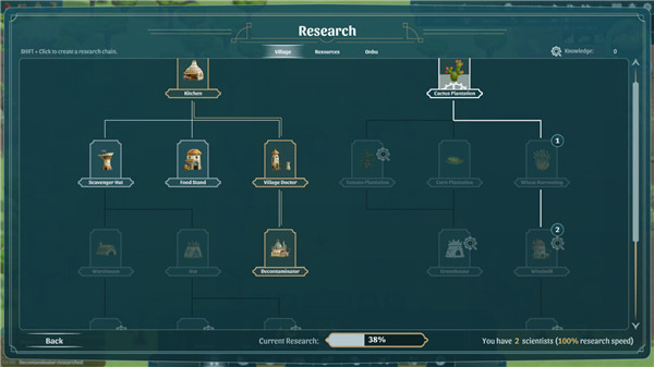 高级建筑需要在研究站中研究解锁,每个研究站满额研究需要两名村民,科技树建筑之后还有针对巨兽的号令、投喂与治疗等等操作。