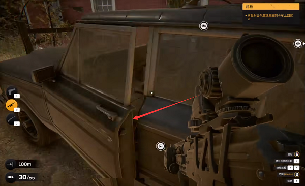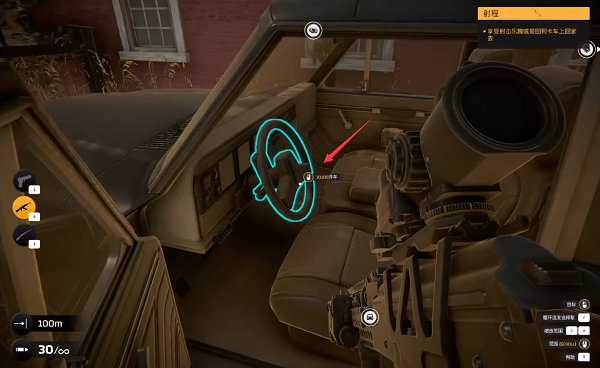 1、首先离开射击场,在房子旁边找到汽车,会有标志物指示。