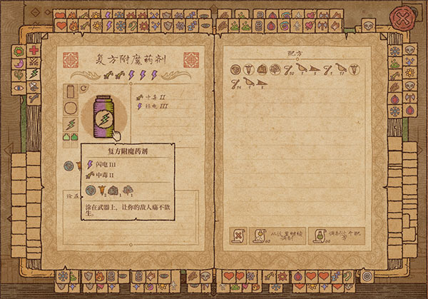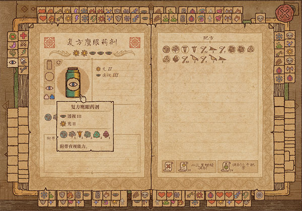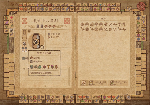 使用炼金术地图仔细规划你的合成路线,从而使药剂实现不同的效果。但务必注意常识:你不会觉得有人会买有毒的治疗药剂吧?当然,说不定你也可以找到有这类需求的顾客?