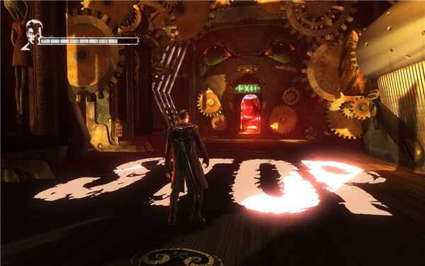往前清杂兵,猎人破坏了摩天巨轮,但丁穿上他的夹克,威风帅气。猎人发射拳头陷阱,及时躲避。凯特引领但丁逃进右侧的建筑-恐怖屋。