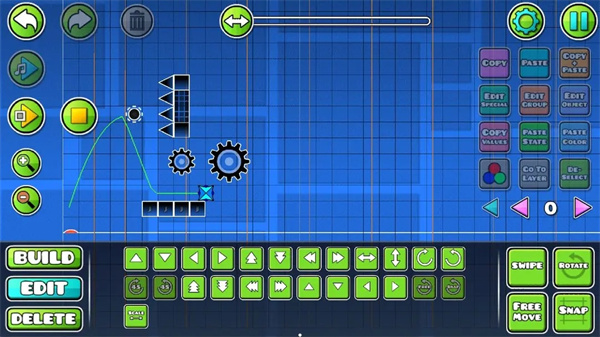 几何冲刺还配备了一个强大的关卡编辑器,允许玩家创建自己的关卡。你可以设计关卡的地形、放置障碍物和设置音乐,并与其他玩家分享你的创作。