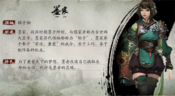 特色:为了兼爱天下的梦想,墨家改造自己换取生命的永恒,代价是墨者的灵魂。