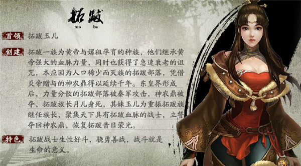 特色:拓跋战士生性好斗,骁勇善战,战斗就是生命的意义。