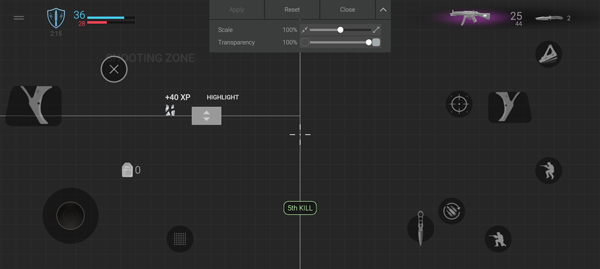 5、匹配成功后会直接进入游戏,然后通过左下角轮盘操控角色的移动,左右两边的扳机为射击,以及换弹、蹲下、跳跃等按钮去击杀敌人。