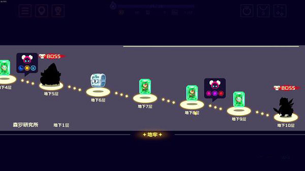 1、游戏的地图是经典的roguelike地图,即每一次挑战的关卡地图都是随机生成。每个关卡的关底奖励是随机的,同时,每五个小关卡会有一个随机的boss关卡。