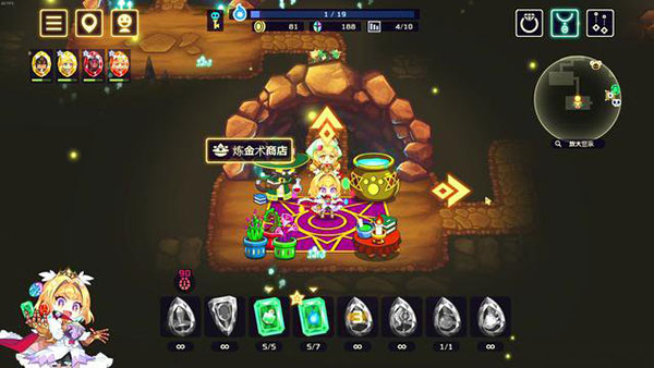 5、探索地图可拾取矿石,用于购买技能卡牌。