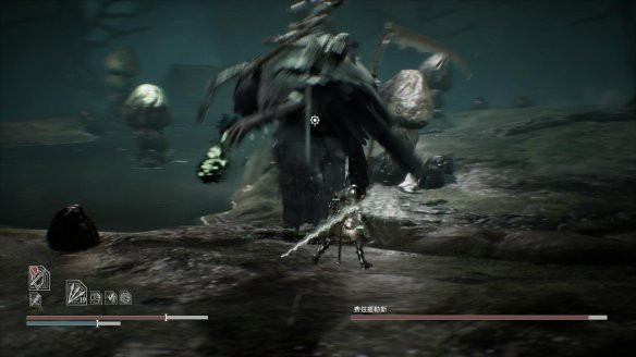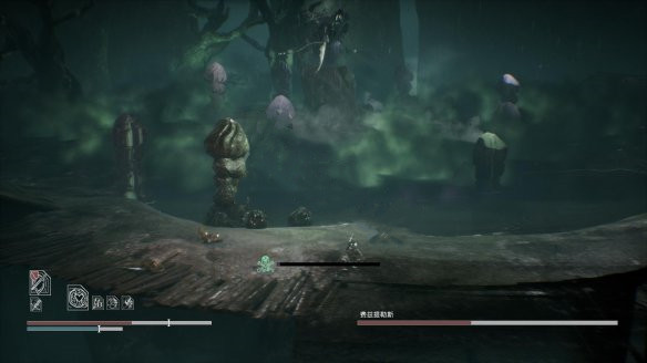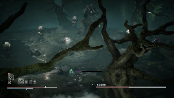 当剩余半血以下以及1/4左右时,贪婪会跳上场景中央的树桩。此时,贪婪不会受到攻击