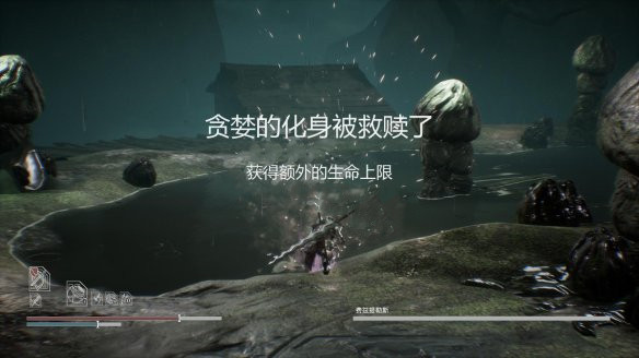 当贪婪血量剩余1/4时,会再次跳上树桩。同时在周围召唤四个小型贪婪诅咒玩家,和中毒类似当屏幕中的诅咒条满的时候玩家会直接死亡。所以赶紧击杀4个小型贪婪,小型贪婪的血很少,一刀就能解决一个