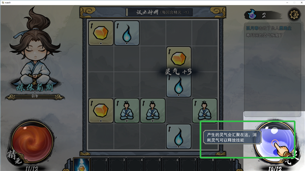 6、产生的灵气也会汇聚起来,技能释放需要消耗灵气。