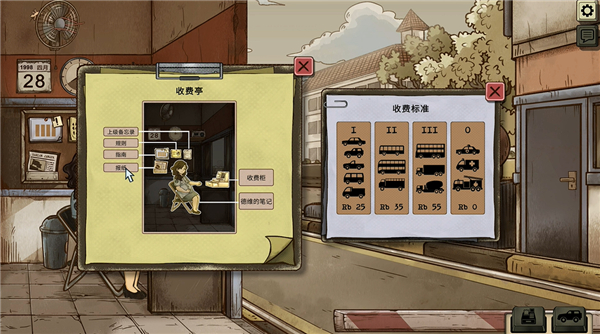 最近我玩了一个很有意思的游戏叫《1998收费员的故事》,感觉挺有挑战性的。游戏里的主角是个怀孕的收费员,名字叫黛薇,她生活在东南亚一个叫做贾纳帕的国家,这个国家正处在崩溃边缘,局势非常动荡。为了养活自己和即将出生的孩子,黛薇每天都要在收费站检查车辆、核实证件,决定谁可以通行。
