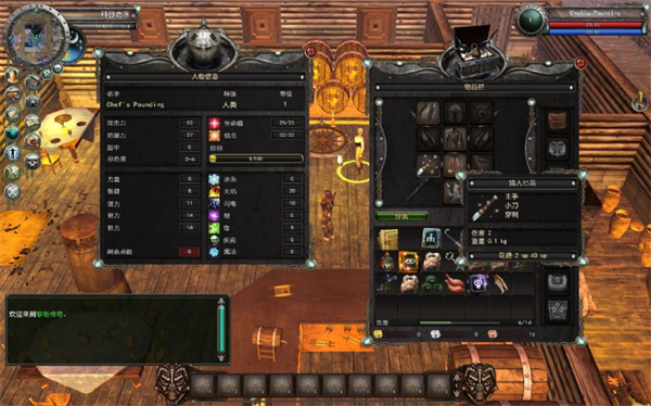 虽然你不用去买什么十六格包包啊什么的,但是是在道具对话框的右手边,就会有几只形态各异的包包,这是用来存放道具的,但是你要注意,你是有负重量,超过了你的走路速度就越来越慢了。好,在哪里买到酒呢?没错就是酒馆,在路上你会遇到一个仓库一个叫高恩的货喝嗨了,你个以给他买瓶酒喝,